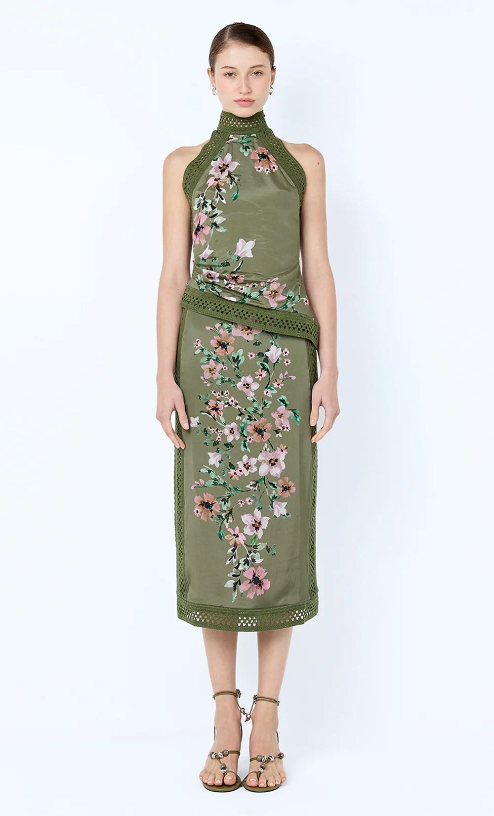 Camelia Midi Skirt Olive Gardenia Floral