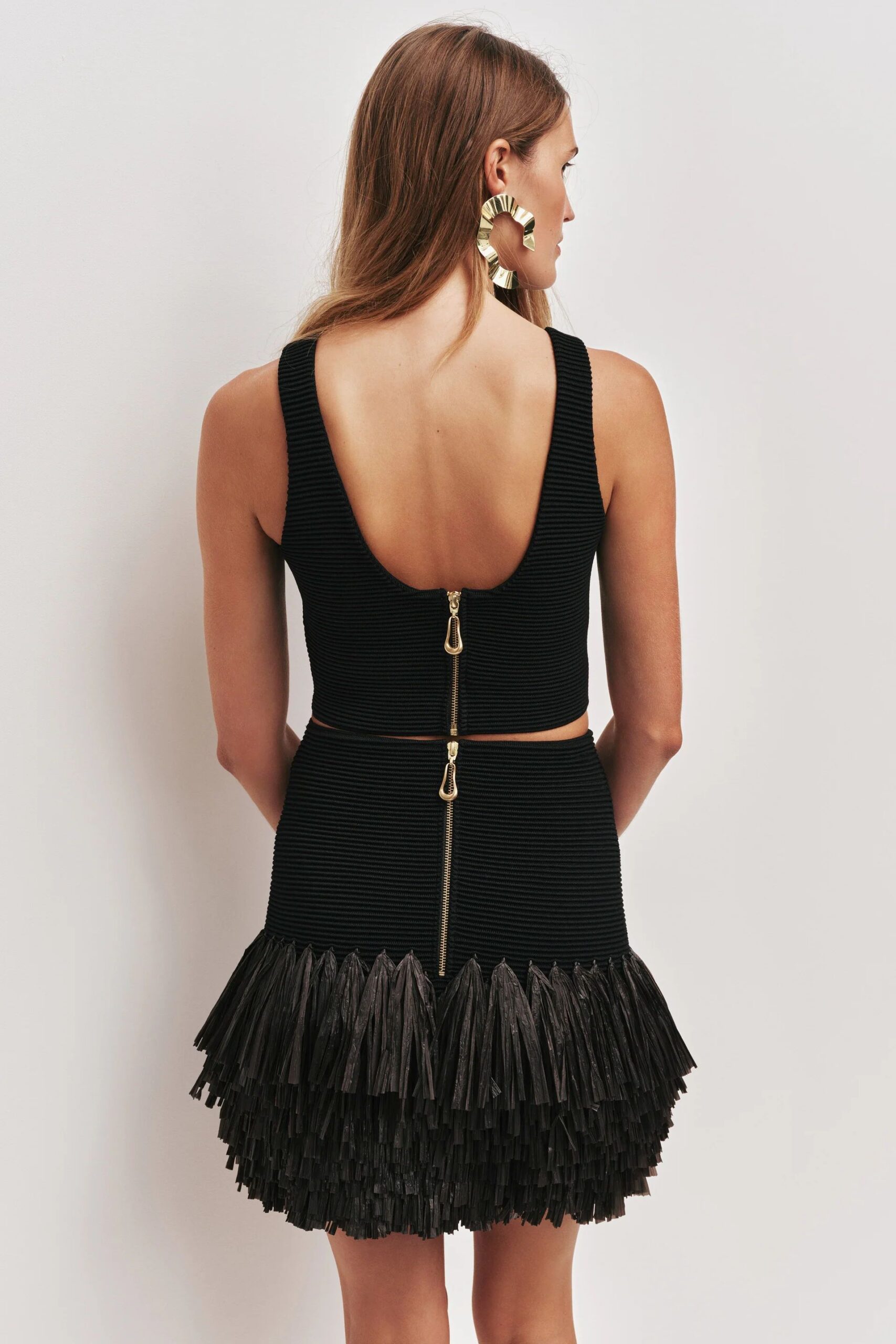 • External back zip with sculptural puller