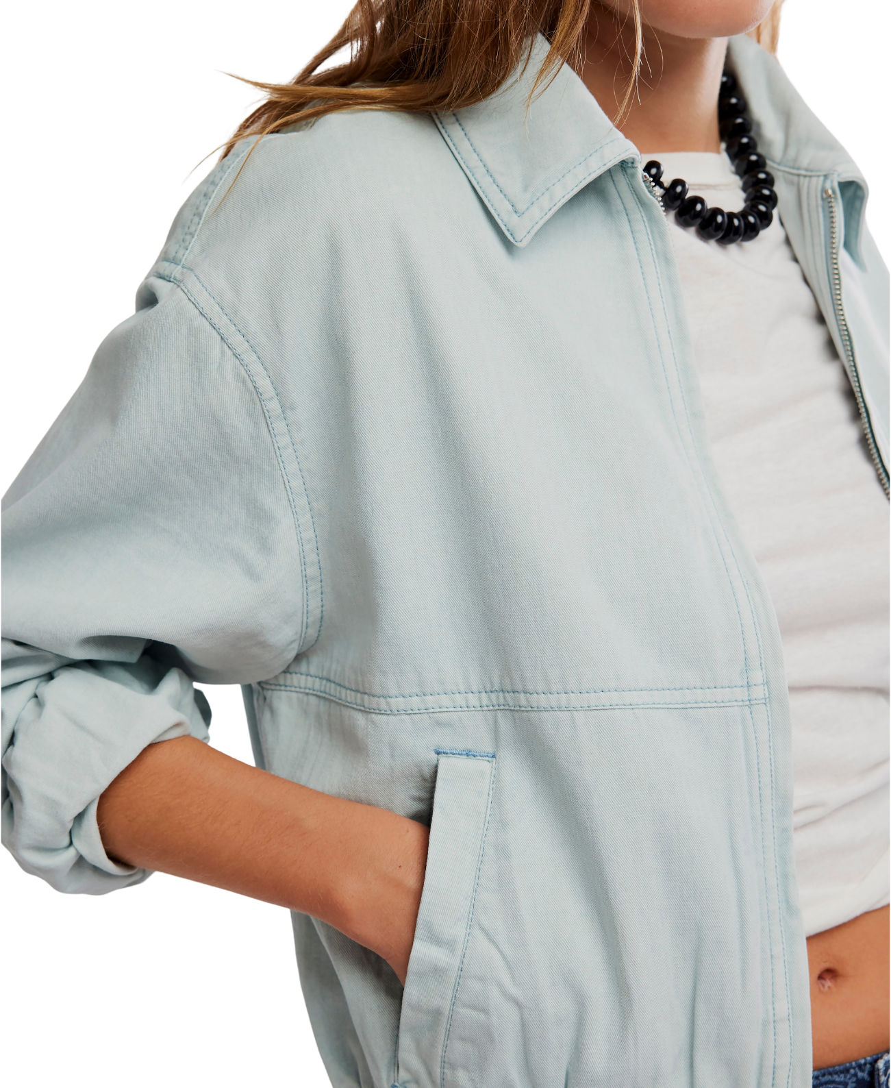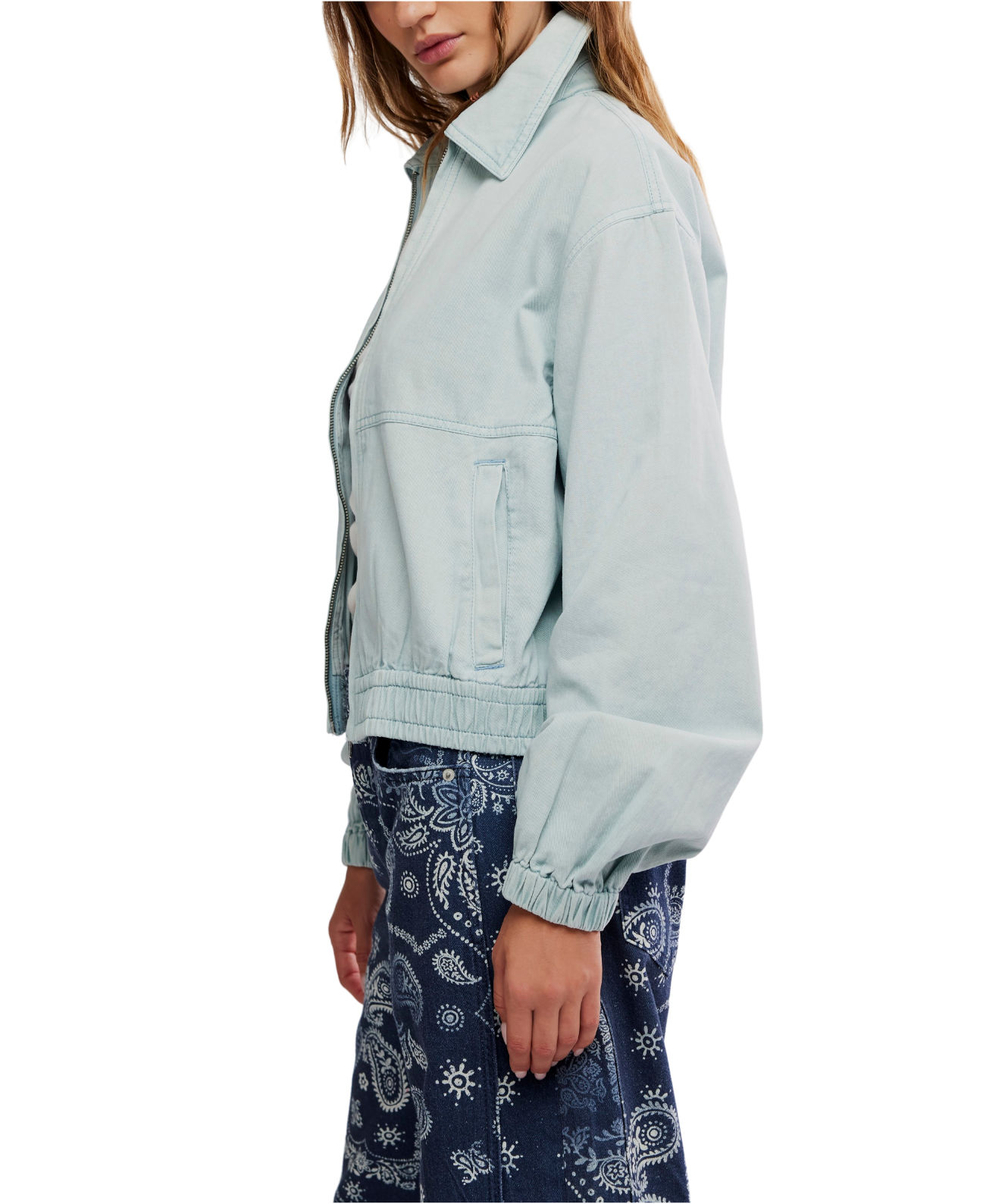 A modern bomber-style essential in soft cotton twill. Designed with an elasticated hem and refined silhouette, it layers seamlessly over denim and dresses alike.