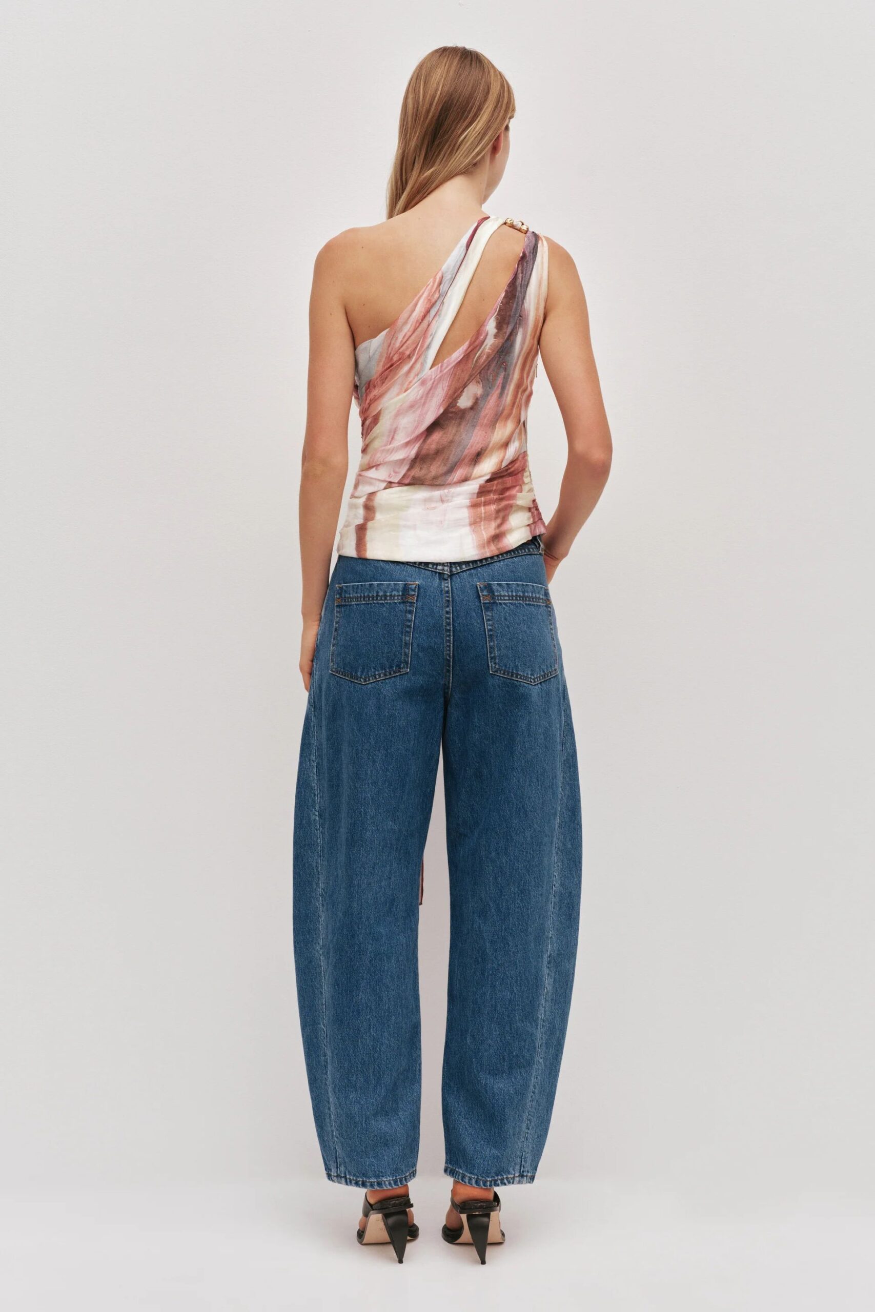 The Capture One Shoulder Top is a contemporary statement piece, designed with a sleek fitted silhouette and striking asymmetric detailing.