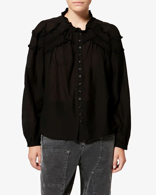 Soft and feminine, this gathered cotton-blend blouse is designed with delicate volume and effortless drape.