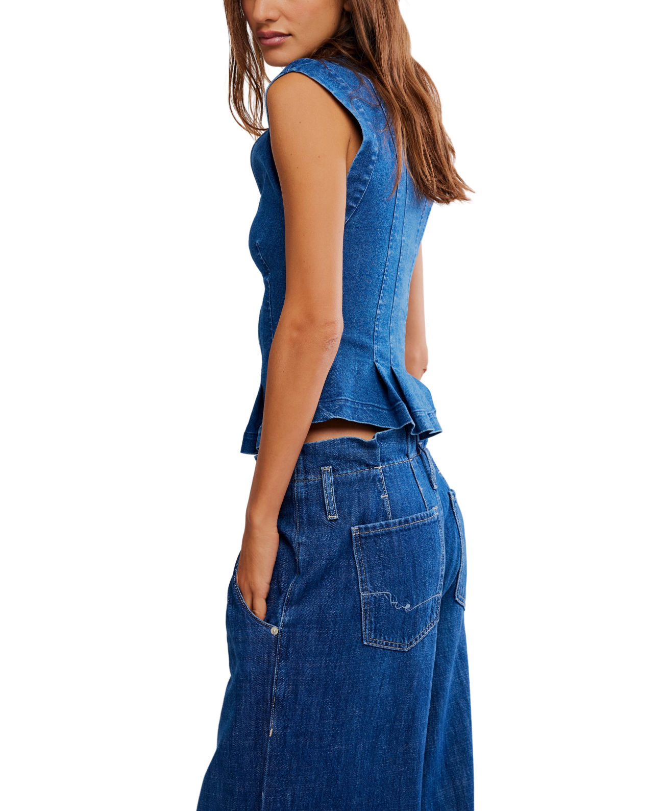 Designed to flatter from every angle, this denim vest top brings a fresh, feminine twist to classic tailoring.