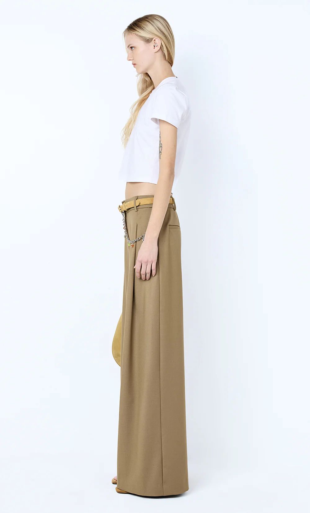 The Faye Wide Leg Pant in Olive offers a polished, tailored look with a modern edge.