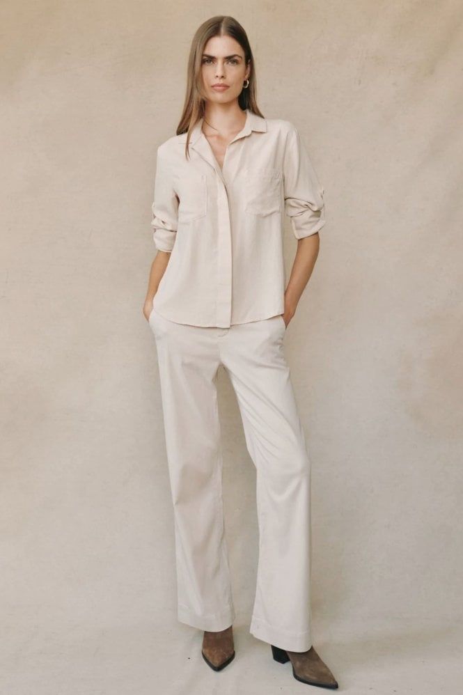 A modern wardrobe essential, the split back button-down is a signature favourite designed for effortless everyday wear. Featuring a classic button-front silhouette with two chest pockets and roll-tab sleeves, this piece is finished with a distinctive split back detail for an elevated, relaxed feel. Easy to dress up or down, it’s a timeless staple you’ll reach for season after season.