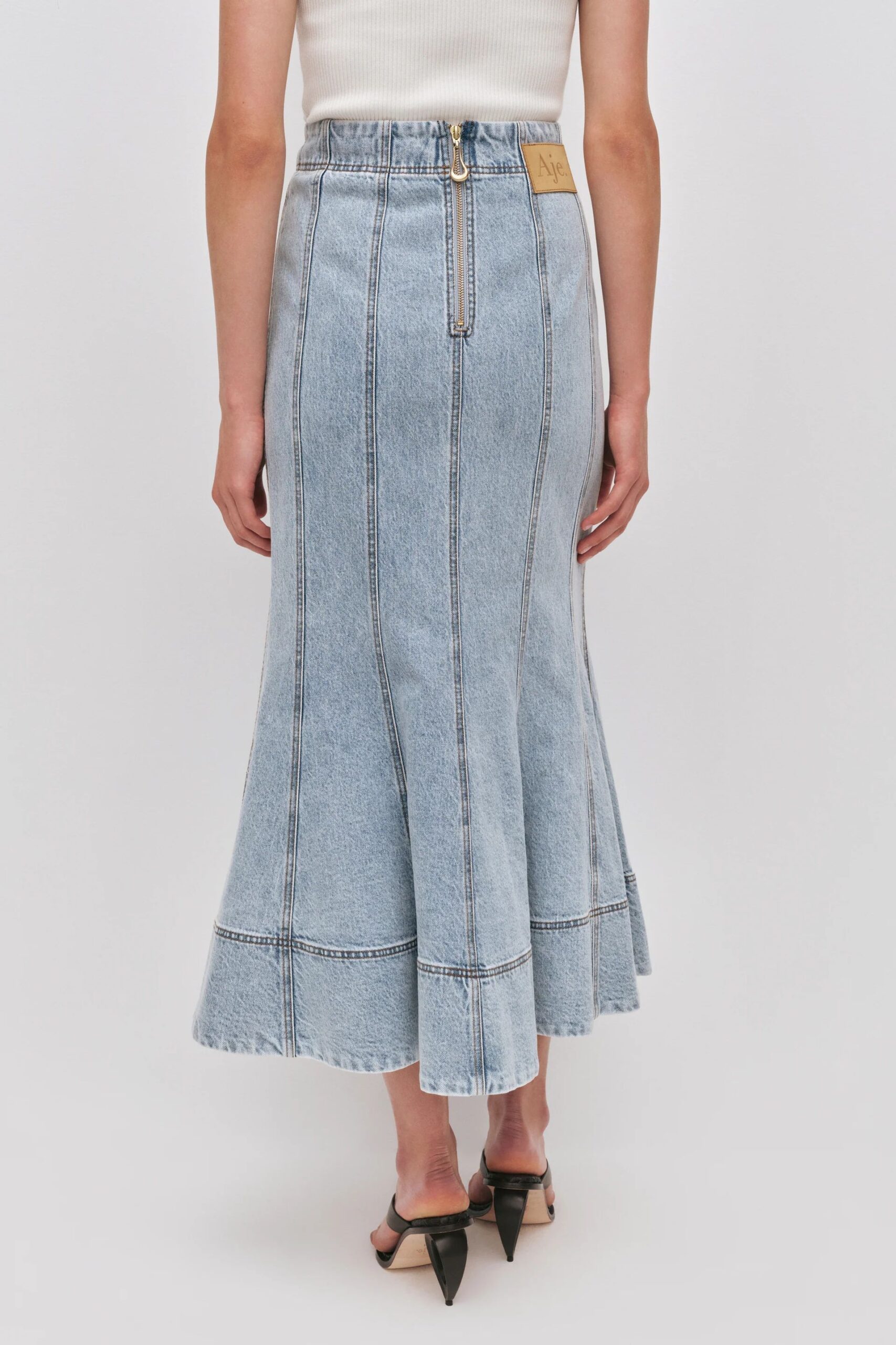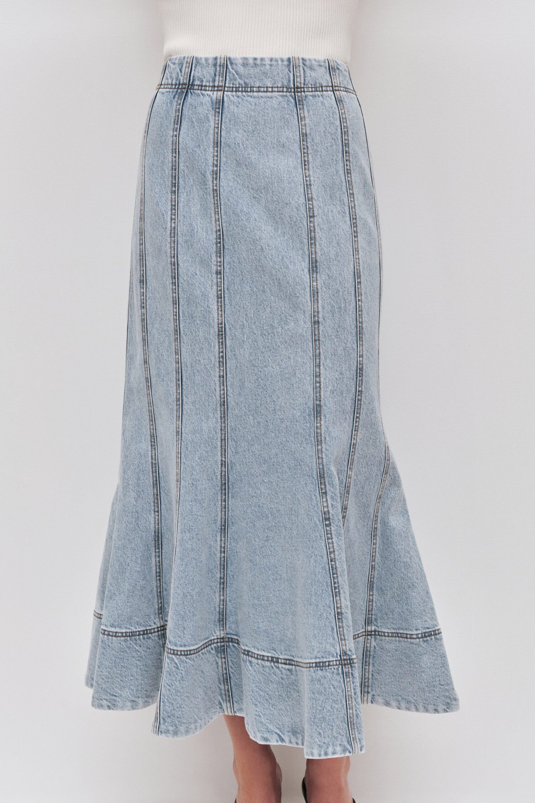 The Denim Midi Skirt in Seasalt Wash is a contemporary wardrobe staple, combining clean structure with effortless versatility.