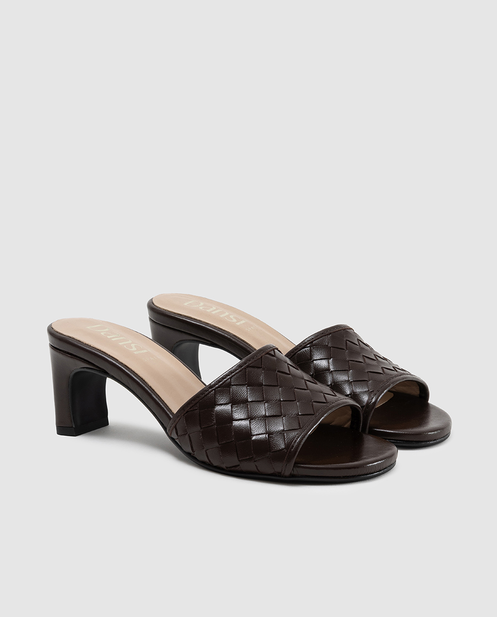 Woven Heeled Mule Brown