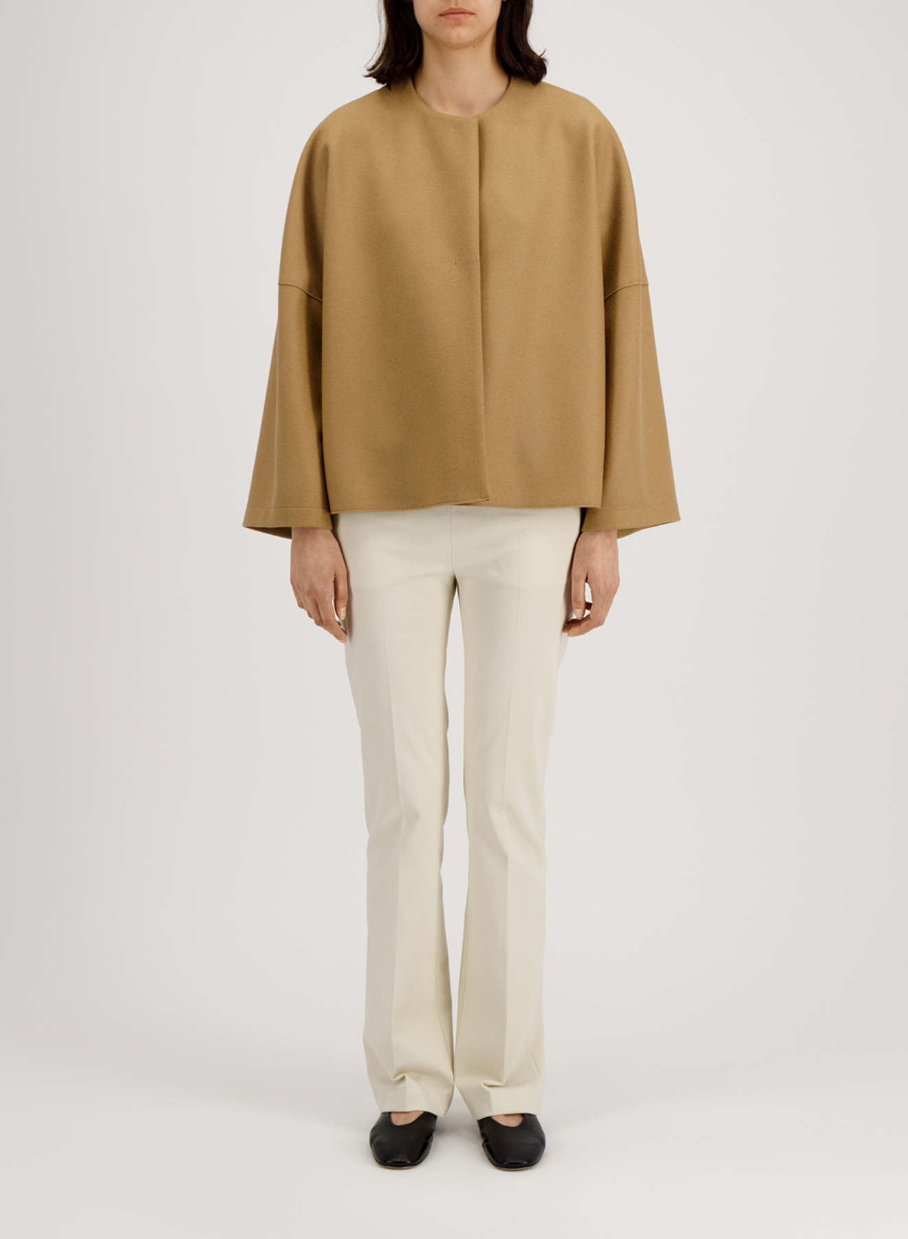 women collarless cape blend tan